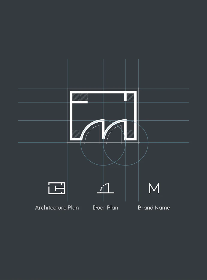 در نگاه اول، لوگوی مطیعی ساختاری ساده دارد، اما پشت این سادگی، مفاهیمی چندلایه پنهان است. فرم کلی لوگو از پلان معماری الهام گرفته، با ترکیبی از خطوط عمودی و منحنی که یادآور ترکیب در و دیوار در فضای معمارانه است. انحنای پایین لوگو، اشارهای ظریف به پلان درب دارد و همزمان با حرف «M» از نام برند نیز همخوانی دارد؛ ترکیبی هوشمندانه از معماری و تایپوگرافی.